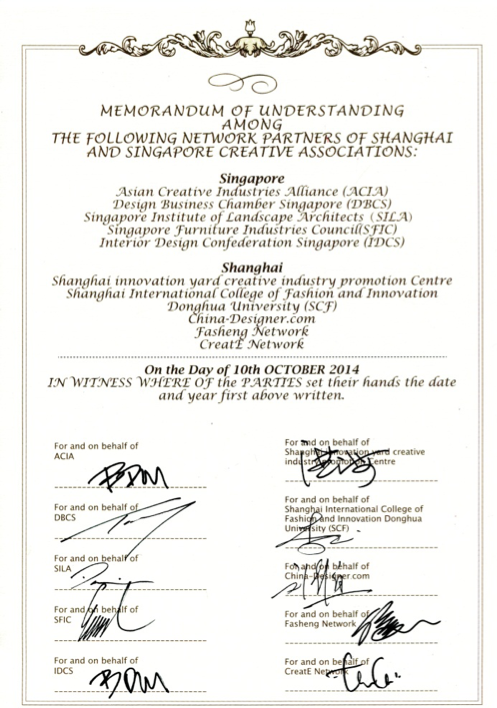 2014年-10月新加坡/上海设计创意组织合作备忘录