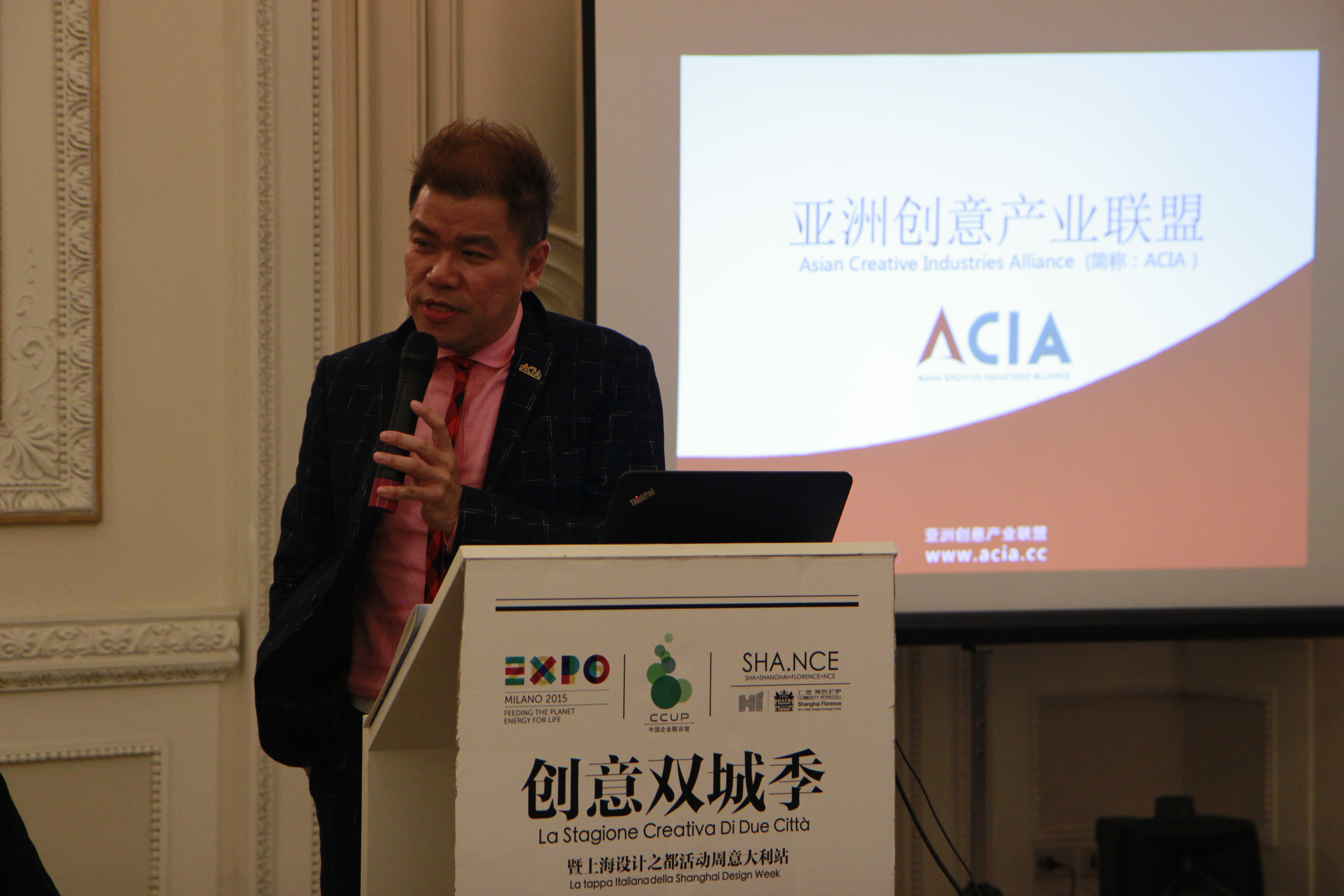 2015年6月11日下午15:00,“创意新经济-上海设计‘带’‘路’”论坛在中意设计交流中心佛罗伦萨基地(意大利佛罗伦萨,viapisana77,Strozzi别墅)圆满举行。由上海设计之都公共服务平台主办,Hiker创意人联盟、上海设计之都城乡与环境设计公共服务平台、上海多媒体产业展示与服务平台协办,创E汇、ACIA创意产业联盟、创意发声合作支持。